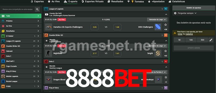 O 8888Bet oferece uma grande seleção de opções de apostas em e-sports com probabilidades competitivas
